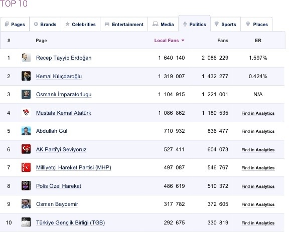 Gördüğünüz üzere, Facebook Politika filtrelemesine baktığımızda, Başbakan açık ara önde.